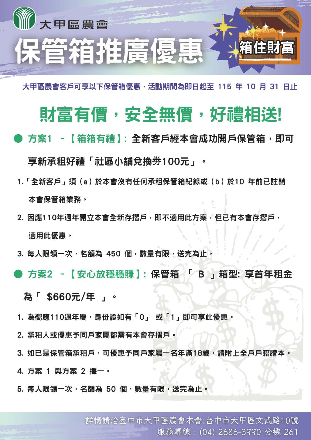 租戶遺失印鑑或鑰匙,應即辦理掛失手續,否則如被冒用開箱,本會不負責任。 |
