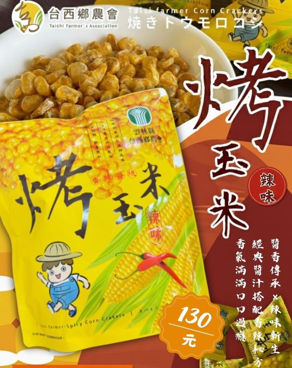 全新登場!台西鄉農會碳烤醬香烤玉米辣味版